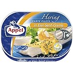 Lieferumfang: 10 x 200g Dose Appel Heringsfilets in Eier-Senf-Creme in der bewährten Dauerkonserve, lange haltbar – ohne Kühlung
