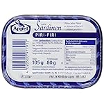 Lieferumfang: 10 x 105g Dose Appel Sardinen-Filets „Piri-Piri“ in der bewährten Dauerkonserve, lange haltbar – ohne Kühlung