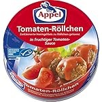 Lieferumfang: 12 x 200g Dose Appel Tomaten-Röllchen in der bewährten Dauerkonserve, lange haltbar – ohne Kühlung