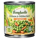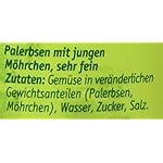 Zutaten:Palerbsen sehr fein (min.50%) Möhrchen (min. 30%) Wasser, Zucker, Salz, ohne zugesetzte Aromen.