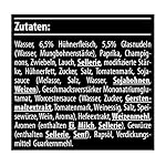 Wasser, 6,5% Hühnerfleisch, 5,5% Glasnudeln (Wasser, Mungbohnenstärke), Paprika, Champignons, Zwiebeln, Lauch, Sellerie, modifizierte Stärke, Hühnerfett, Zucker, Salz, Tomatenmark, Sojasauce (Melasse, Salz, Wasser, Sojabohnen, Weizen), Geschmacksverstärker Mononatriumglutamat, Worcestersauce (Wasser, Zucker, Gerstenmalzextrakt, Tomatenmark, Weinessig, Salz, Speisewürze, Wein, Aroma), Hefeextrakt, Weizenmehl, Aromen (enthalten Ei, Milch, Sellerie), Gewürze (enthalten Sellerie, Senf), Rapsöl, Verdickungsmittel Guarkernmehl