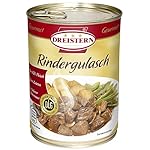 DREISTERN Rindergulasch 540 Gramm Konservendose - Genuss für den feinen Gaumen. Unser Rindergulasch ist ein echter Klassiker der deutschen Küche. Das Rindfleisch wird schonend gegart, damit es zart wird - verfeinert mit einer pikant gewürzten Bratensauce wird dieses Produkt zu einer echten Gaumenfreude. Unsere Zutaten werden sorgfältig ausgesucht und kommen bei uns - hergestellt mit viel Liebe - in jede Dose. Durch den hohen Fleisch- und Gemüsegehalt in unseren Produkten schmeckt es immer wie hausgemacht! Das Gulasch mit besten Zutaten und in einer nachhaltigen Verpackung ist schnell und einfach - innerhalb von wenigen Minuten - in jeder Küche zubereitet. Genießen Sie das leckere Essen aus der Dose am Besten serviert als warmen Eintopf frisch aus dem Kochtopf. Durch schonende Garprozesse bleiben die wichtigen Vitamine und Mineralstoffe in unseren leckeren Produkten erhalten und unterstützen Ihre gesundheitsbewusste Ernährung. Unsere Klassiker aus der Konserve eignen sich ideal für die Bevorratung ohne Kühlung. Keine andere Lebensmittelverpackung wird so häufig recycelt wie die Dose - so können auch Sie bewusst und nachhaltig genießen! Mit unserem Rindergulasch tun Sie also nicht nur sich selbst etwas Gutes, sondern auch Ihrem ökologischen Fußabdruck. DREISTERN SEIT 1934 - QUALITÄT DIE ÜBERZEUGT Dreistern - Qualität die Schmeckt Qualität ist für uns nicht nur ein Wort. Qualität liefern wir aus Tradition – und das seit 1934! Ganz nach unserem Motto „Qualität die schmeckt“ verwenden wir für unsere klassischen Rezepturen nur beste Zutaten und bieten Ihnen so Gerichte, die immer schmecken wie hausgemacht.