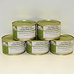 Zutaten: Schweinefleisch und Schweinespeck 70%, Schweinleber 25%, Brühe, Speisesalz, Zwiebel, Gewürze (u.a. Majoran, SELLERIE), Zucker.