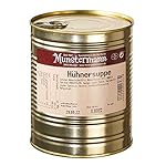 Eine kräftige Hühnersuppe mit Spargel, Möhren und Lauch, die durch den natürlichen Geschmack und die besondere Frische überzeugt. Tafelfertig. ZUTATEN: Hühnerbrühe (55%), Hühnerfleisch (12%), Nudeln, Eierstich, Spargel, Lauch, Möhren, Maltodextrin Zucker, Speisesalz, Gewürze, Zwiebelsaftkonztentrat, Hefeextrakt. ALLERGENE: EI