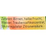 Zutaten: Birnen, halbe Frucht, Birnensaft aus Birnensaftkonzentrat, Säuerungsmittel Citronensäure, Festigungsmittel Calciumchlorid/Calciumlactat.