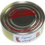 Dosenwurst, 5 x Chili Lyoner scharf à 200g. Die Schärfegrade geben wir in folgenden Stufen an: 1 - mild / 3 - scharf / 5 - brennt deutlich / 7 - gefährlich / 10 - höllisch! Wer bei scharfen Lebensmitteln geübt ist, kann bis Stufe 5 essen. Darüber sind die üblichen Vorsichtsmaßnahmen zu beachten!