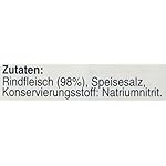 Zutaten: Rindfleisch (98%), Speisesalz, Konservierungsstoff: Natriumnitrit.