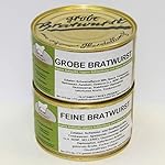 Zutaten feine Bratwurst: Schweine- & Rindfleisch (68%), Speck, Trinkwasser, Speisesalz, Gewürze (u.a. SELLERIE), Stabilisator: Natriumtriphosphat, Dinatriumphosphat, natürliches Aroma, Zucker. grobe Bratwurst: Schweinefleisch 98%, Speisesalz, Zwiebel, Gewürze (Majoran, SELLERIE), Stabilisator: Natriumtriphosphat, Dinatriumphosphat, natürliches Aroma, Zucker.