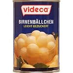 Zutaten: Birnenbällchen, Wasser, Zucker, Säureregulator: Citronensäure, Antioxidationsmittel: Ascorbinsäure.